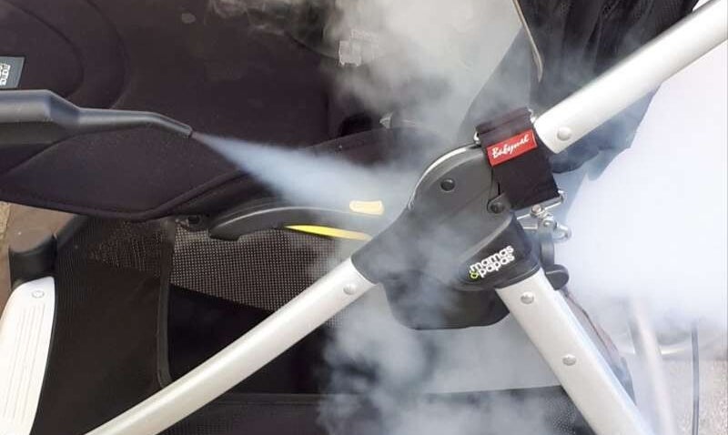 - Steam clean 165 degrees (buggies & child seat) upholstery, hood, basket, seat, straps, buckles